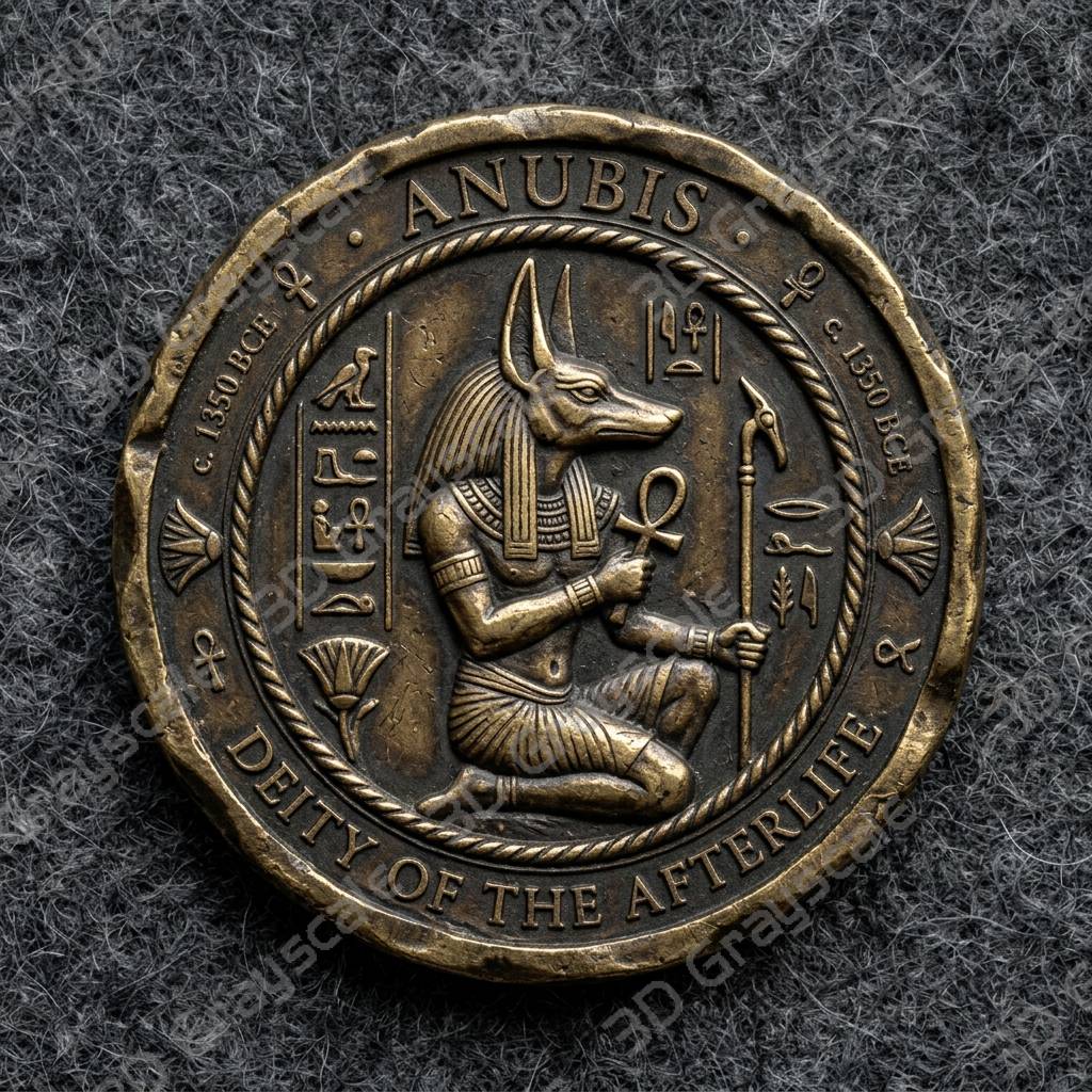 Anubis Jackal God Egyptian Underworld Coin Depth Map for Laser Engraving