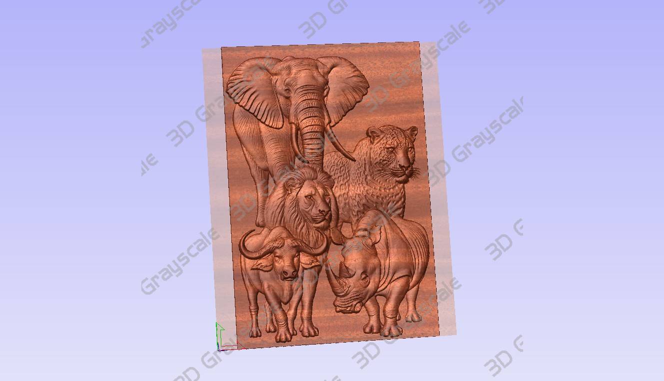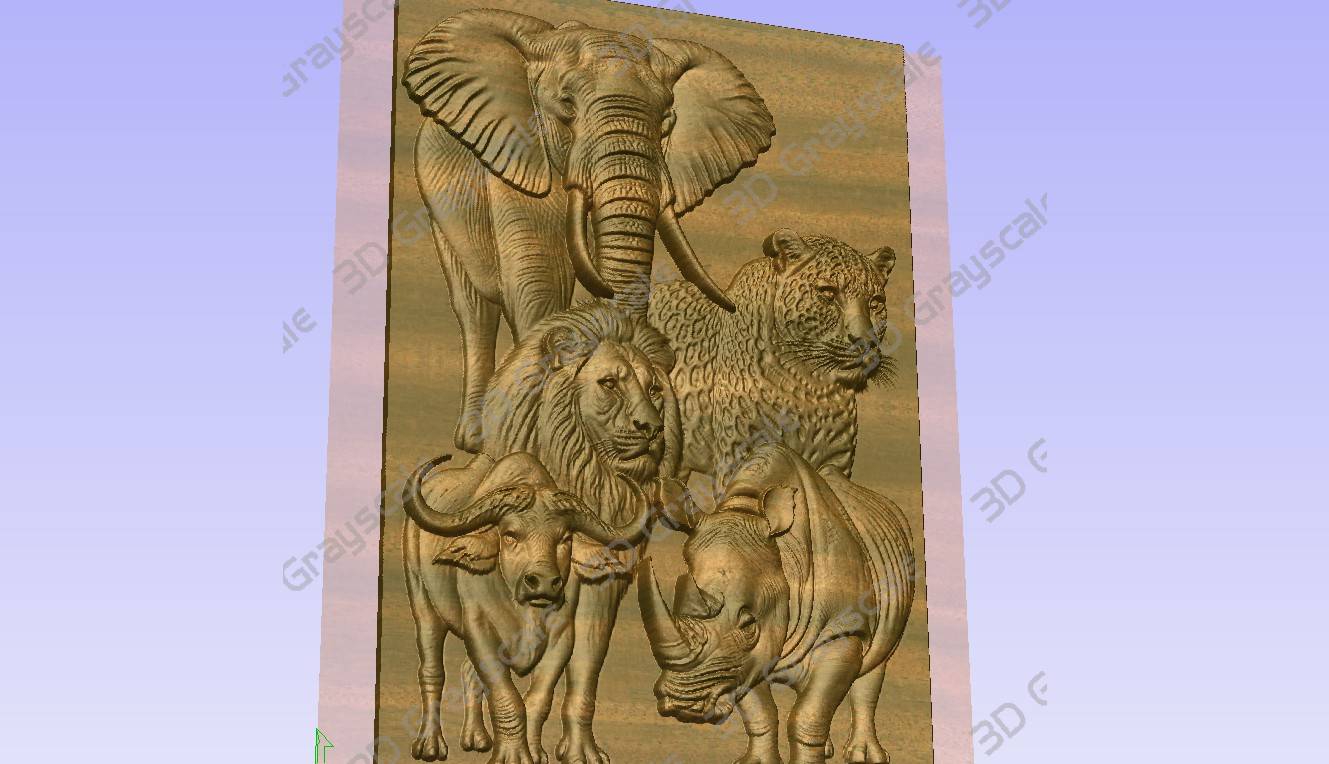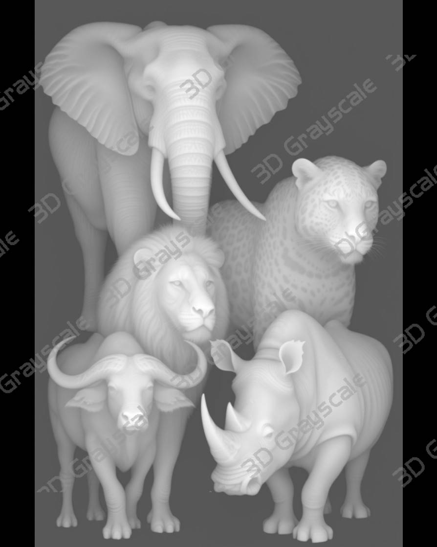 african animals featuring big five grayscale depthmap for lase engraving and 3d router machining wood carving
