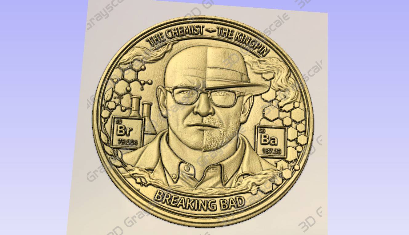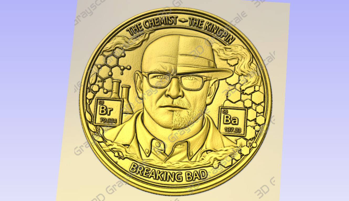 Laser engraving coin featuring breaking bad character