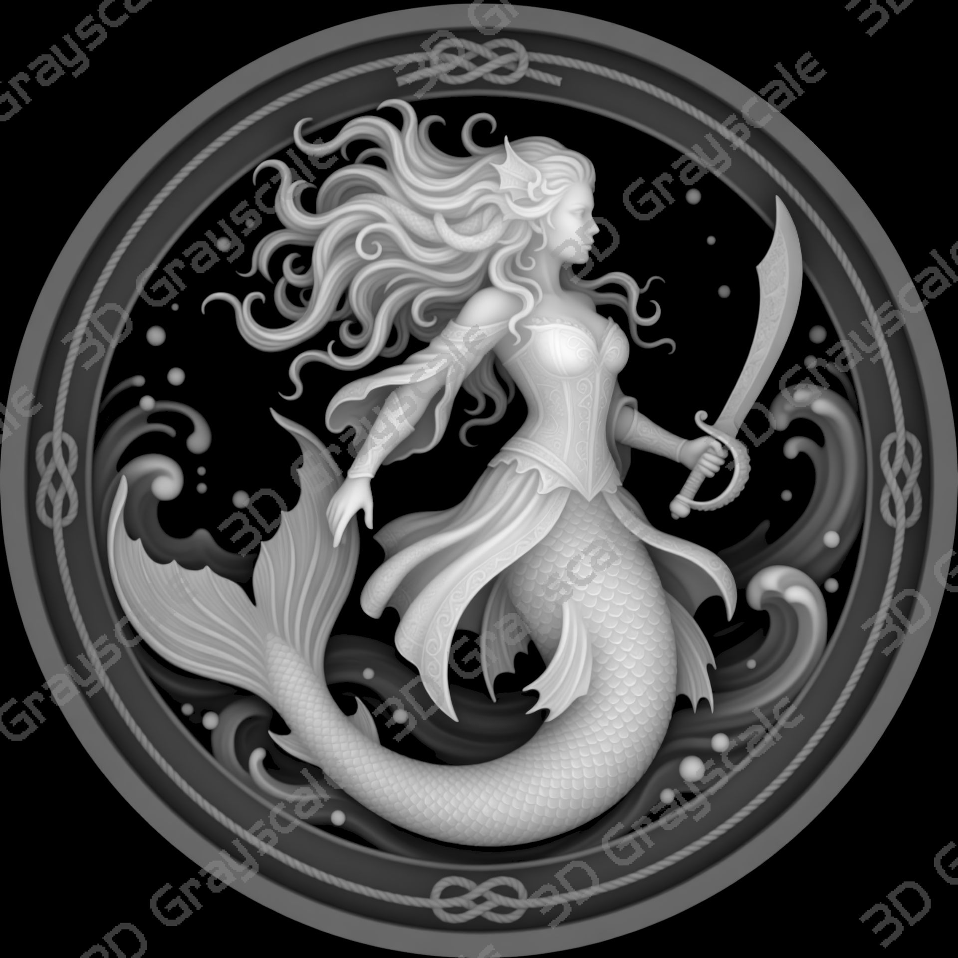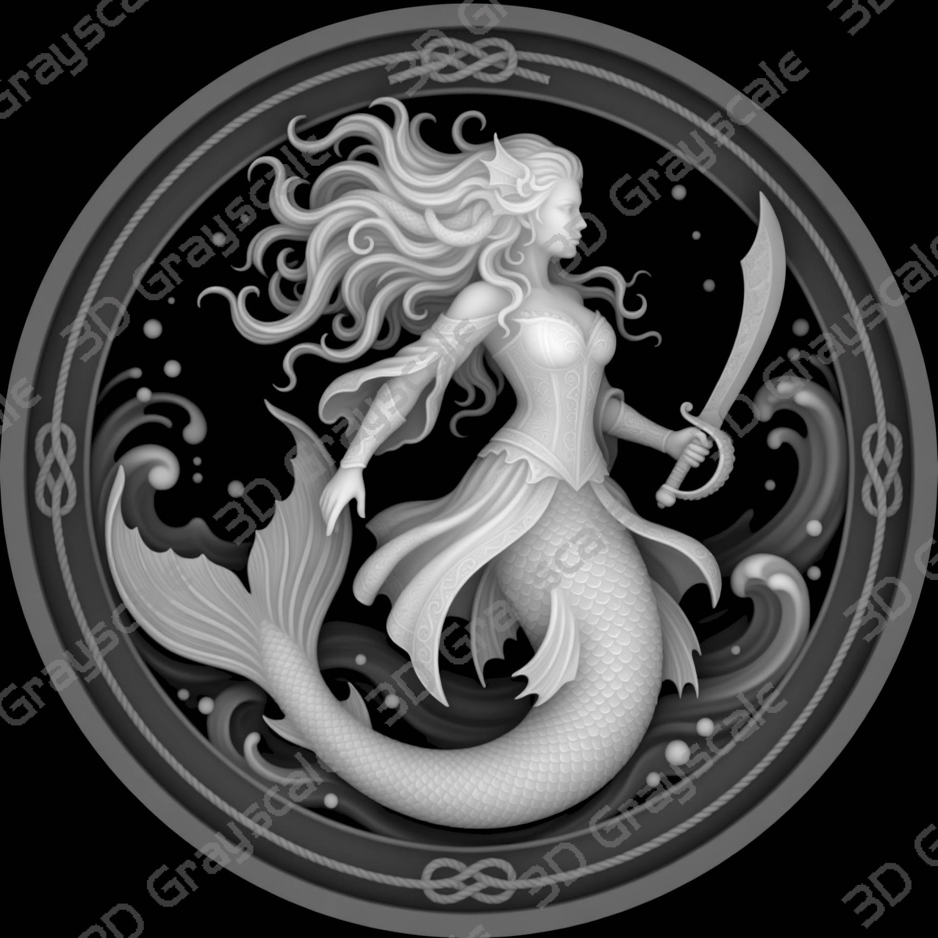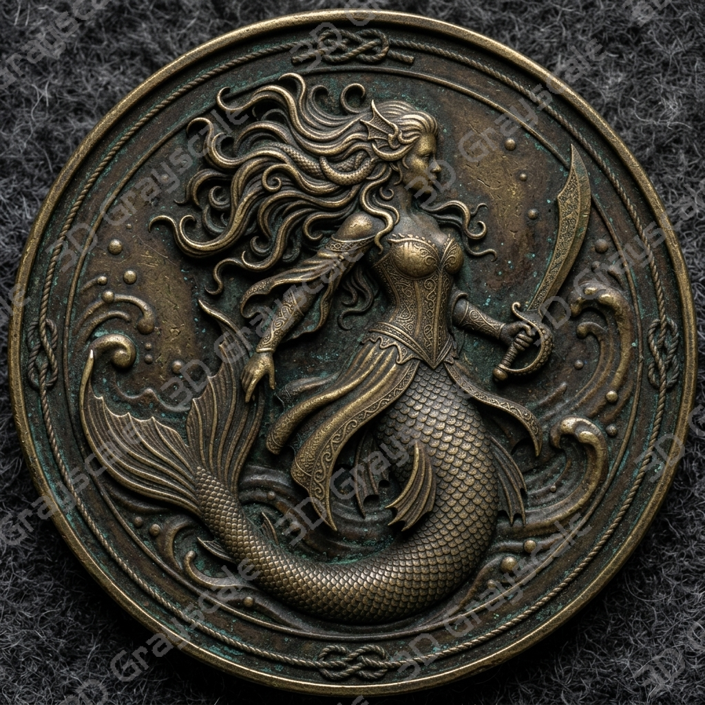 Create highly detailed 3D engraved coins with this Cutlass-wielding siren Sexy Female Pirates depth map, built for clean and consistent laser engraving results.