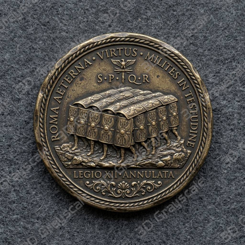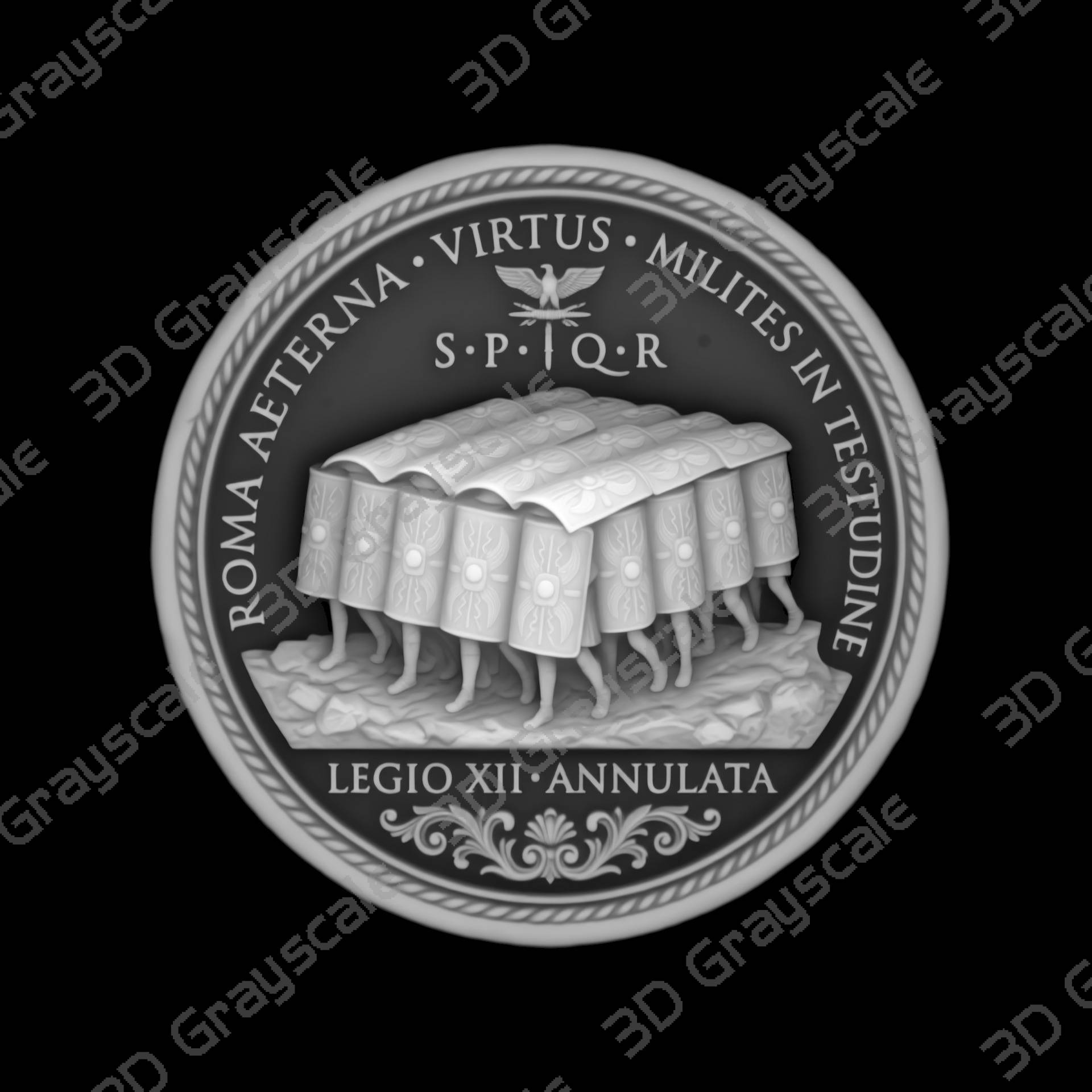 Create highly detailed 3D engraved coins with this Roman Imperial Legion Testudo depth map, built for clean and consistent laser engraving results.