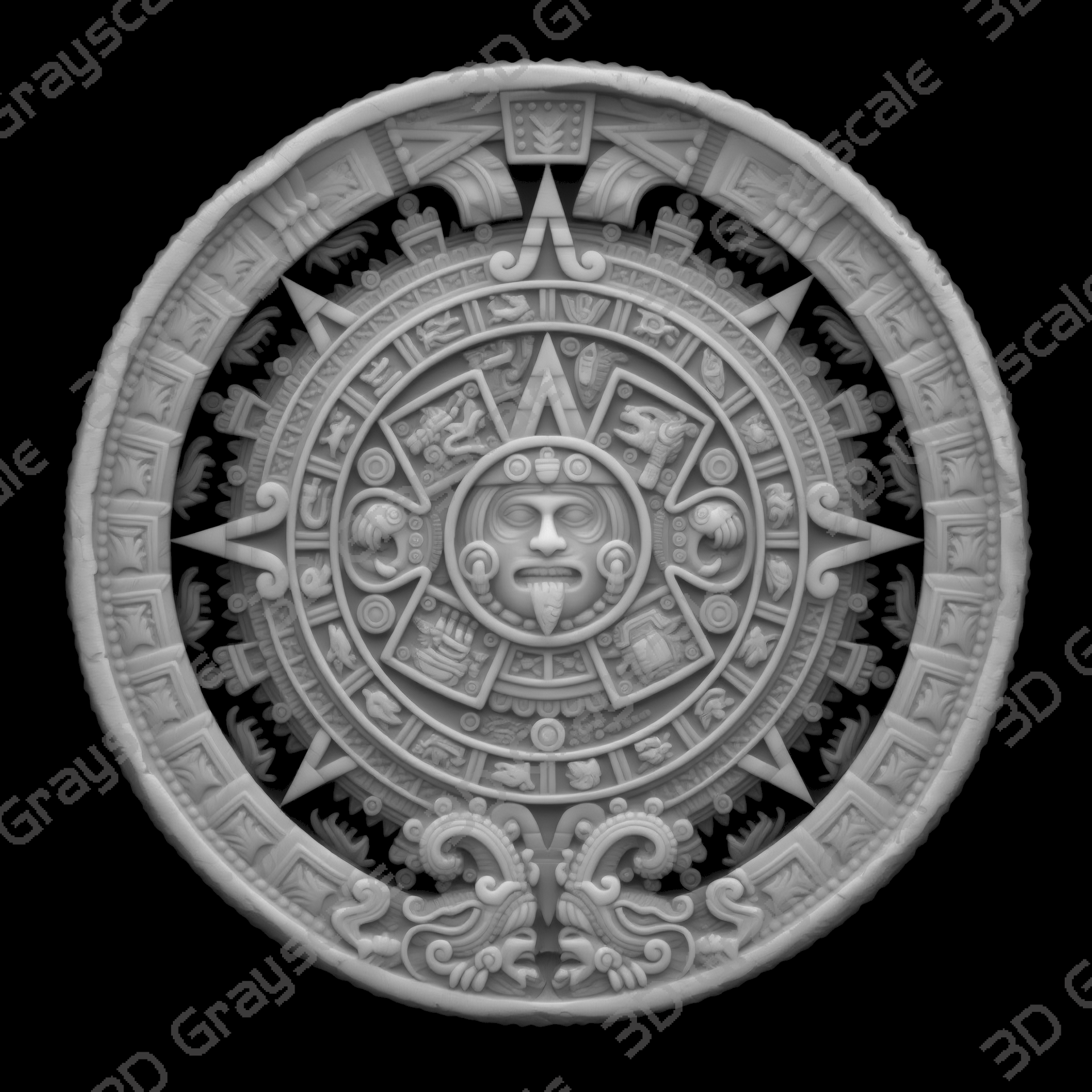 Aztec Sun Stone Aztec Sun Stones Coin Depth Map for Laser Engraving
