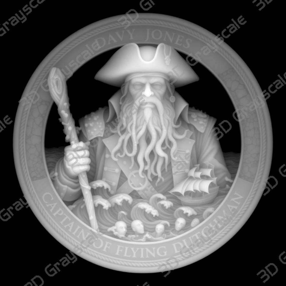 davy jones depthmap coin engraving bitmap 3d for lightburn and fiber lasers engraving