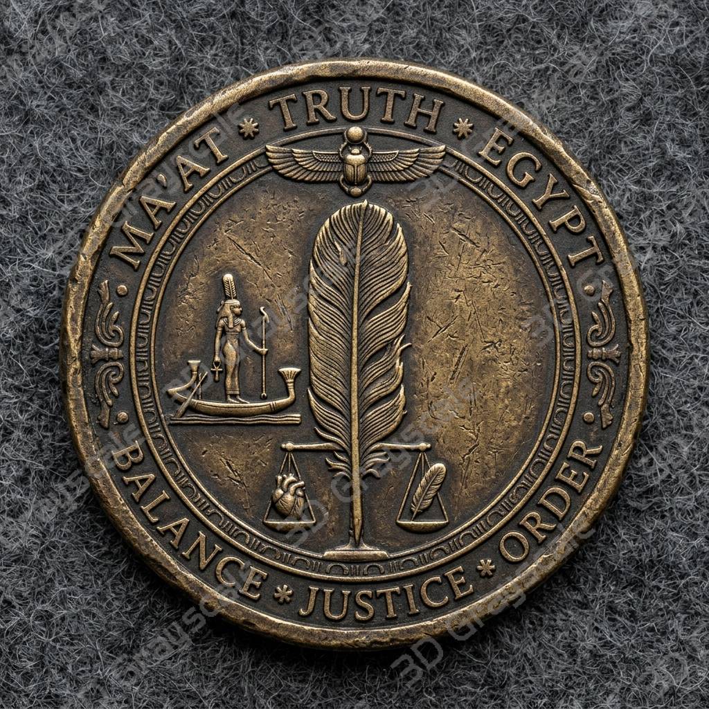 The design features Ma’at Feather Truth Egyptian Underworld, making it ideal for collectible coins, themed challenge coins, engraved metal tokens, and custom laser engraved projects.