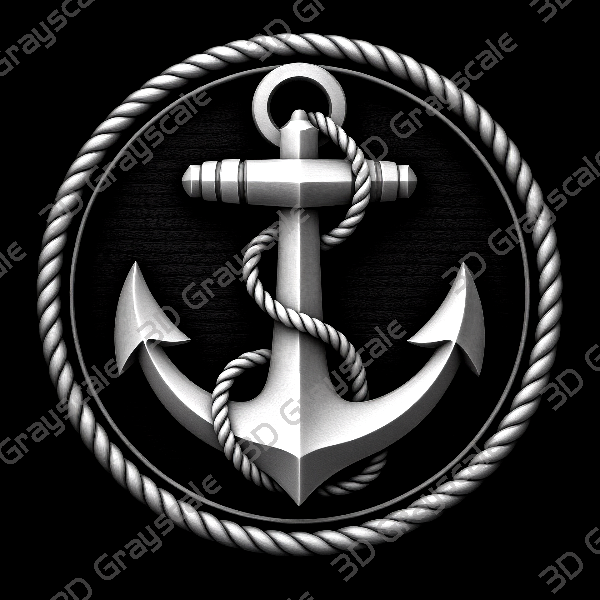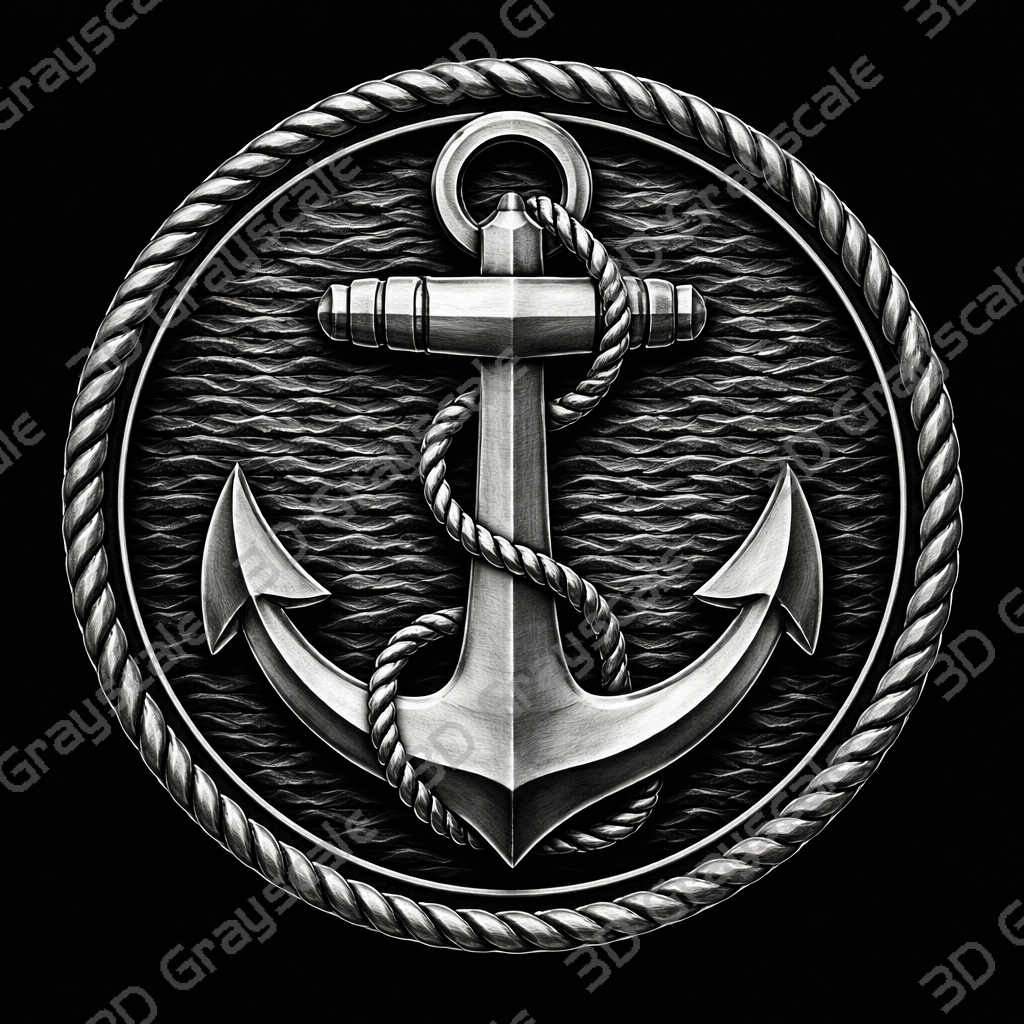 Highly detailed Pirate Anchor coin depth map designed for 3D laser engraving, embossing, and relief engraving on coins.