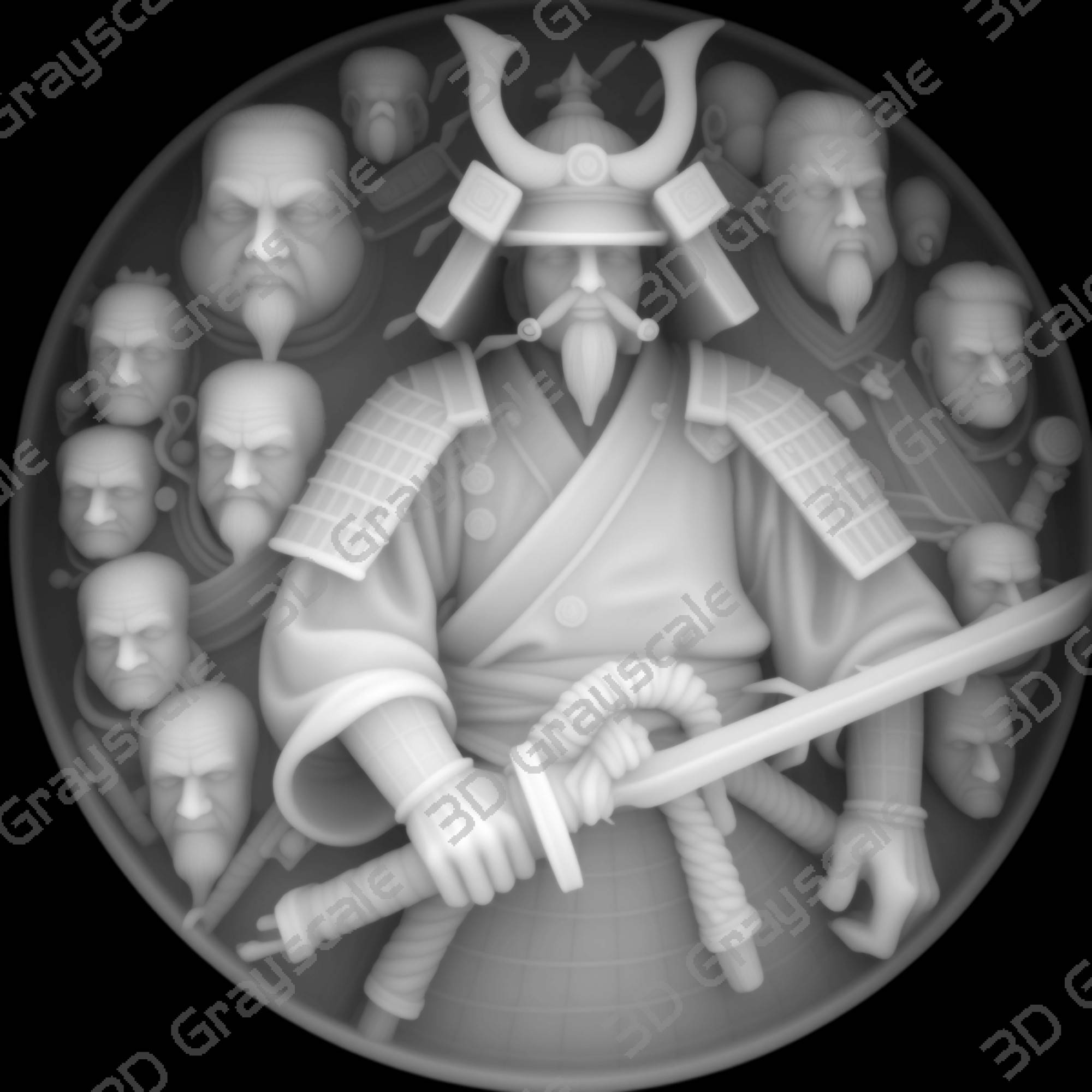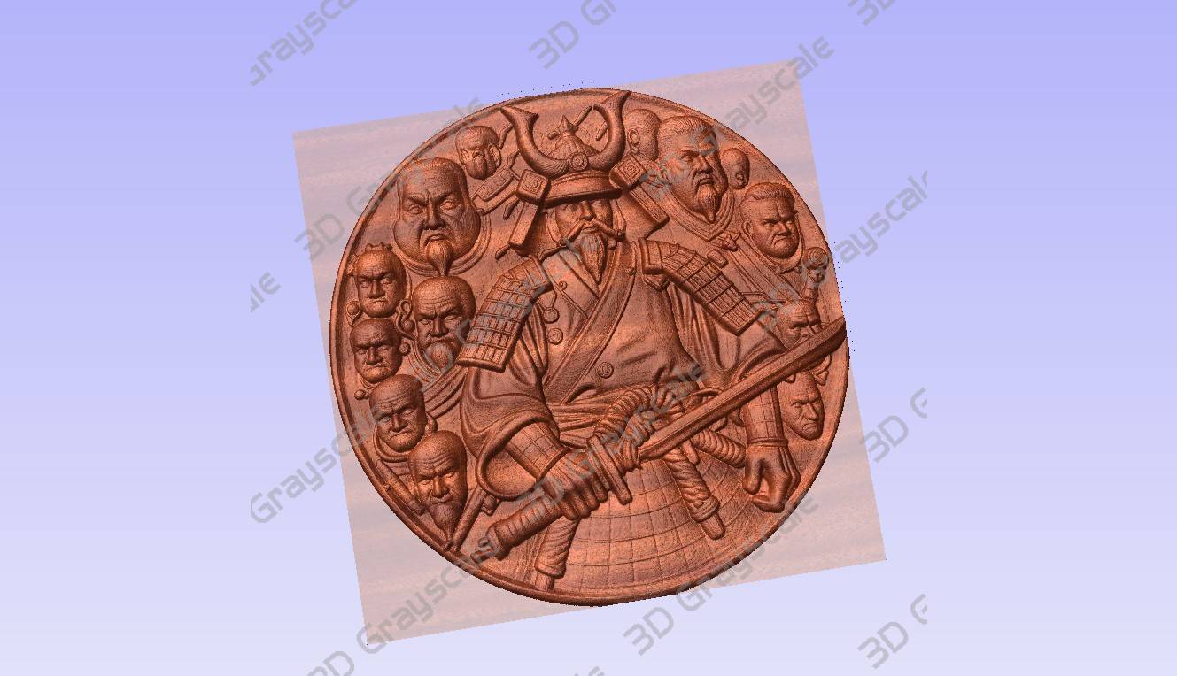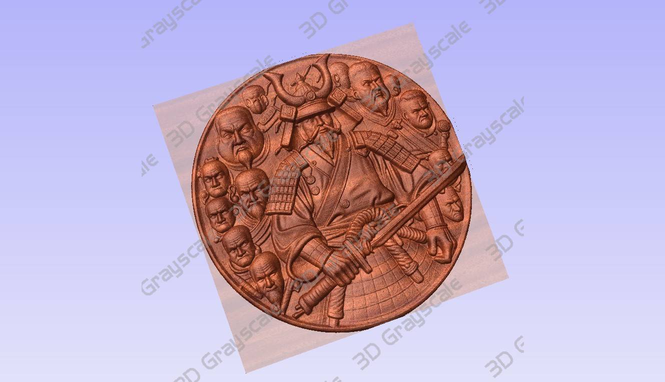 Samurai katana grayscale coin laser engraving